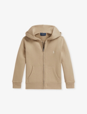 Boys' logo-embroidered zip-up cotton-blend hoody