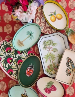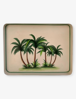 Palm tree hand-painted iron tray 43cm x 30cm