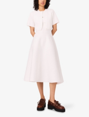 Maje's clothing successfully strikes a balance between vintage glamour and non-conformity. It's all about the little details - balloon sleeves alongside plunging v-necklines, cropped hems on high-waisted pants and mini dresses with large flap pockets. The brand's recognisable 'M' monogram appears frequently throughout the range; see if you can spot gingham prints and woven tweeds, too. The label achieves its innovative aesthetic with high-quality fabrics that are both appealing and practical - think airy organic cotton, supple silk blends and romantic embroidered lace.Â