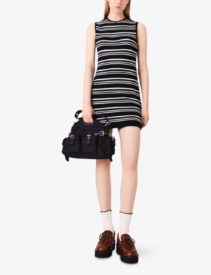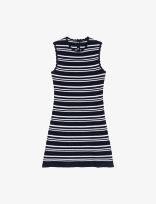 Round-Neck Flared-Skirt Stretch-Knit Mini Dress- Discount price:$200.00
