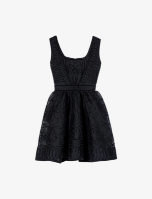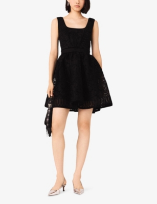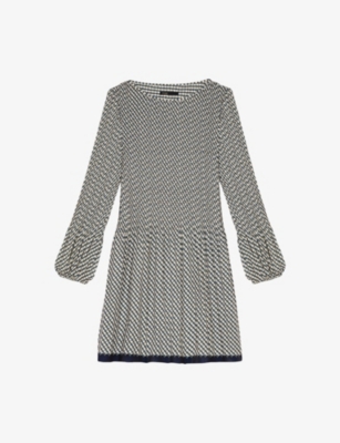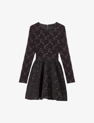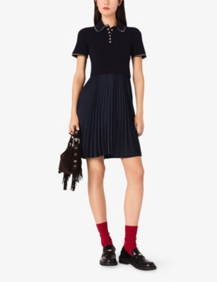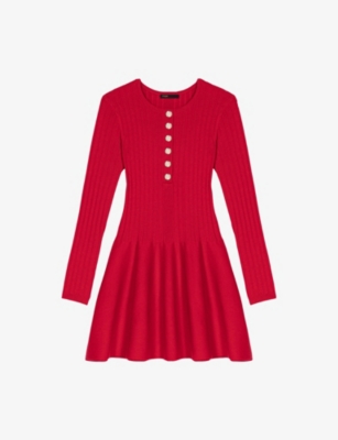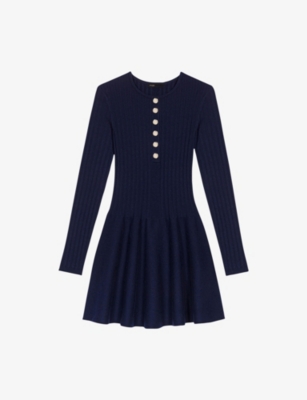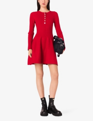 Round-Neck Flared-Skirt Stretch-Knit Mini Dress- Discount price:$235.00