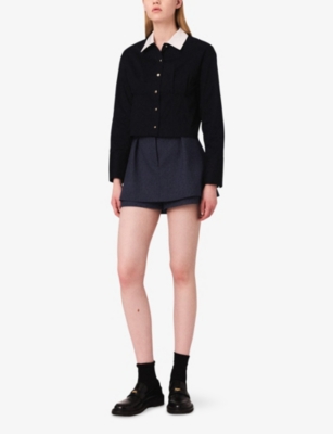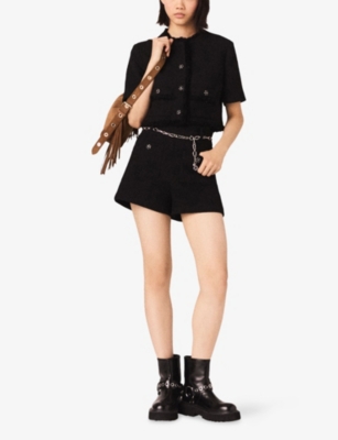 Rhinestone-Embellished Crossed-Front Stretch-Woven Shorts- Discount price:$220.00