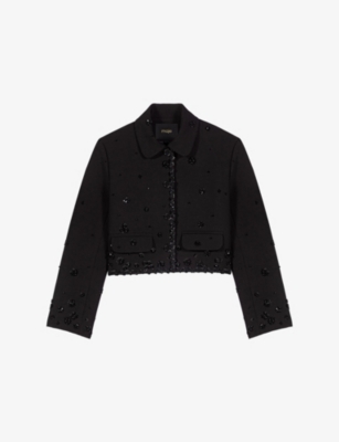 Rhinestone-Embellished V-Neck Stretch-Woven Waistcoat- Discount price:$250.00