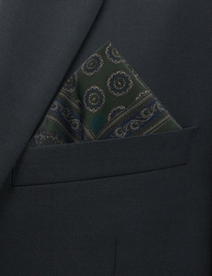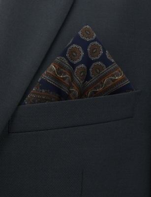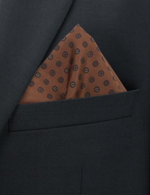 Our range of designer pocket squares is brimming with bold patterns and colourful designs. If you like to keep things classic, opt for a polka dot or stripe print. For people who gravitate towards statement items, swirling paisleys and repeated logo motifs appear throughout. Nature-lovers will be delighted by our patterned pocket square collection inspired by flowers and fauna. Think watercolour-inspired blooms, enchanting bird graphics and illustrations of rolling landscapes. As for the colour palette, explore everything from understated grey and cream hues to rich reds and deep blues. For two pocket squares in one, select a double-sided design, which you can reverse for a whole new look.Â
