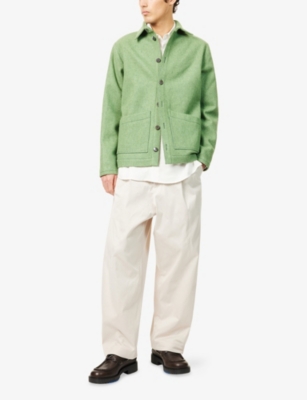Pleated Barrel-Leg Brushed Cotton Trousers