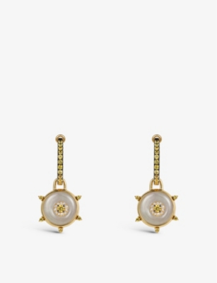 Celeste 18ct yellow-gold, 0.07ct diamonds, 0.53ct yellow sapphire and 10.27ct jade huggie earrings- Price:$5,735.00