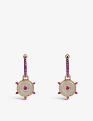 Celeste 18ct rose-gold, 0.07ct diamonds, 0.77ct pink sapphire and 9.75ct jade huggie earrings- Price:$5,770.00