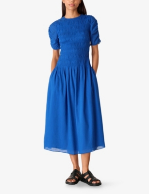 Avery Smocked-Bodice Short-Sleeve Cotton Midi Dress- Discount price:$142.00