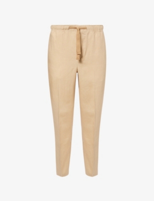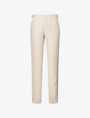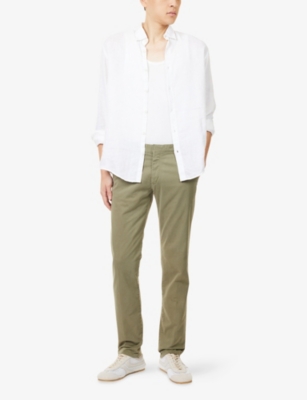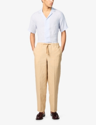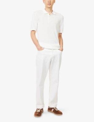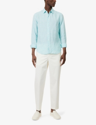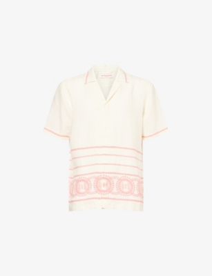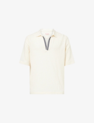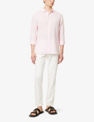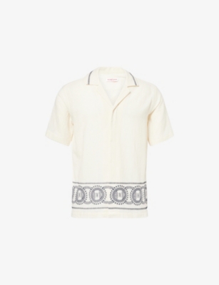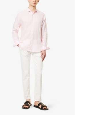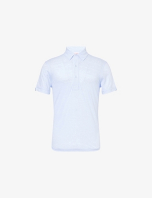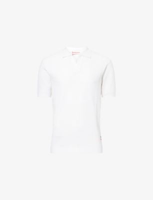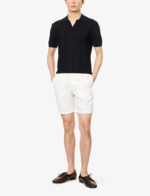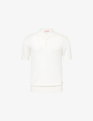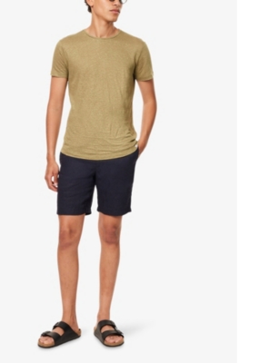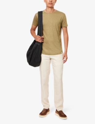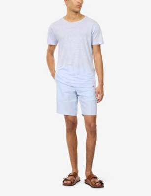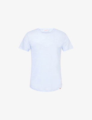 Packing your holiday suitcase? Cut and crafted from high-quality cloths - including super-soft towelling and Pima cotton - Orlebar Brown T-shirts add relaxed detail to your poolside leisurewear. You'll find crewneck styles with ribbed trims alongside block colours and stripes. Look out for the branded white tab on the front hem, embroidered with the label's unmistakable red initials. Brush up after lounging by the water in an Orlebar Brown shirt: go for a classic Spanish cotton and linen blend, or roll up long sleeves on a tailored piece for a casual dinner by the beach.