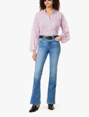 Inspired by the extravagant denim cuts of the 1970s, women's flared jeans at PAIGE are created with high waists, tapered knees and wide ankles. A high-rise pair in a dark indigo wash offers an authentic bygone aesthetic, while its fabric is designed to offer plenty of stretch and recovery for a snug fit, day after day. Opt for jeans in a light shade to pair with platform heels: explore pieces with welt patch pockets, contrast stitching and criss-cross belt loops.