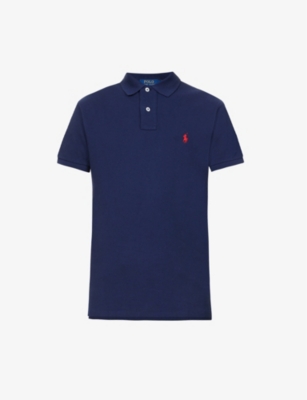 Short-sleeved logo-embroidered custom slim-fit cotton-jersey polo shirt- Price:$161.00