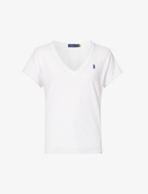 POLO RALPH LAUREN: Logo-embroidered V-neck cotton-jersey T-shirtPOLO RALPH LAUREN: Logo-embroidered V-neck cotton-jersey T-shirt