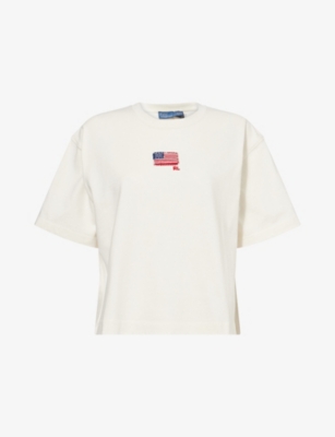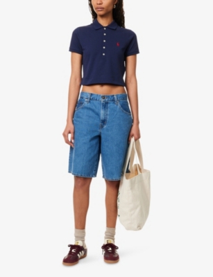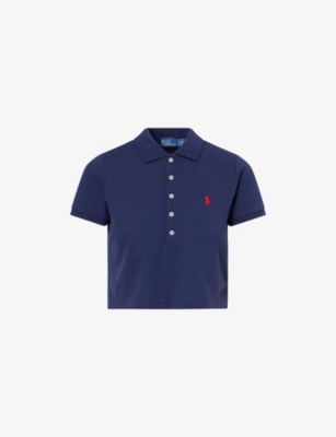 POLO RALPH LAUREN: Embroidered Cropped Cotton-Jersey T-ShirtPOLO RALPH LAUREN: Embroidered Cropped Cotton-Jersey T-Shirt
