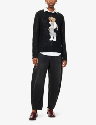 POLO RALPH LAUREN: Embroidered Boxing Bear Open Knit JumperPOLO RALPH LAUREN: Embroidered Boxing Bear Open Knit Jumper