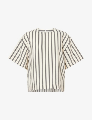 POLO RALPH LAUREN: Striped Short-Sleeve Silk-Blend TopPOLO RALPH LAUREN: Striped Short-Sleeve Silk-Blend Top