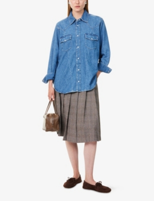 Relaxed-Fit Curved-Hem Denim-Blend Shirt