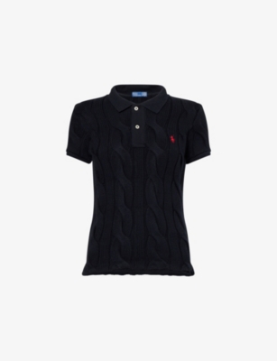 POLO RALPH LAUREN: Cable-Knit Short-Sleeves Cotton Polo ShirtPOLO RALPH LAUREN: Cable-Knit Short-Sleeves Cotton Polo Shirt