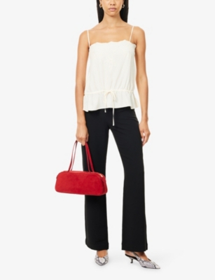 Add structure and smartness to your everyday outfit with a pair of Reformation pants. Look out for uncompromising brights, from lime-green to magenta, or keep it classic with midnight black. Jersey blends are soft and stretchy, as are pairs crafted from cotton-rich denim. Choose cargo pants in a dark hue for a utilitarian aesthetic, and pair them with a close-cut Reformation top and a cashmere cardigan shrugged on over the top.Â
