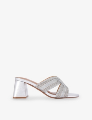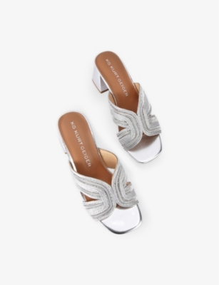 Paparazzi Low crystal-embellished metallic heeled sandals- Discount price:$59.00