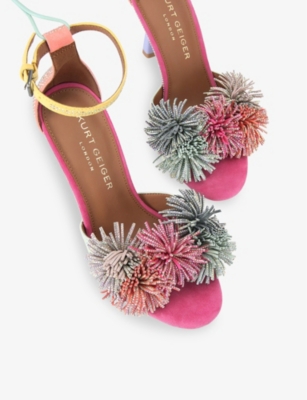 Pom-Pom Ankle-Tie Heeled Suede Sandals- Discount price:$118.00