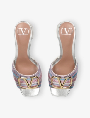 VLogo Signature Crochet Metallic Heeled Leather Mules- Discount price:$515.00