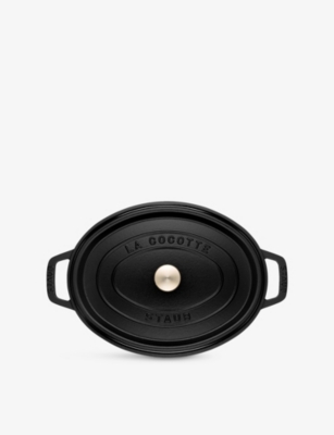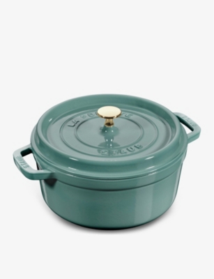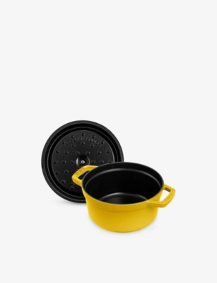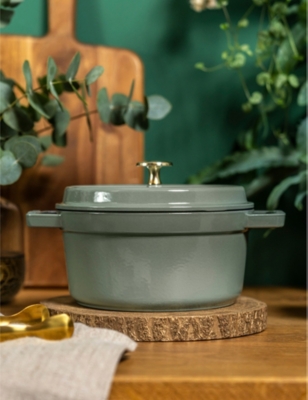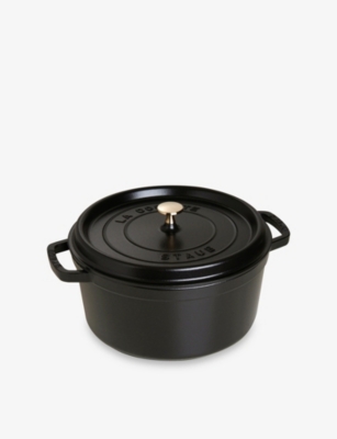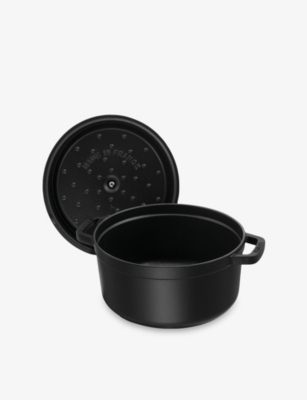 With the functionality to boil, braise, stew and bake, Staub's famous cocotte is your ultimate kitchen sidekick. It's a versatile cooking dish that will open the door to an abundance of culinary masterpieces. The creation of each cocotte takes at least a week and involves 20 talented craftspeople, with every piece expertly engineered in premium-quality material that's made to stand the test of time. High-performing cast iron allows heat to distribute evenly, while the interior's matte black finish adds flavour by optimising the caramelisation of your ingredients. The unique design of the cocotte's lid is the brand's best-kept secret; its carefully designed contours create a continuous rainfall effect that ensures food cooks evenly without drying out.