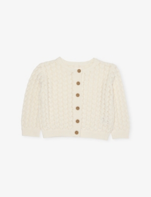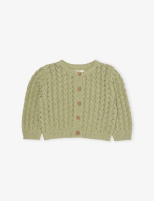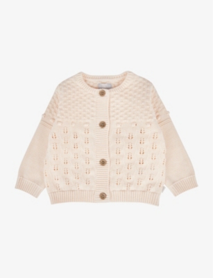 Button-detail pointelle cotton-knit cardigan 3-24 months