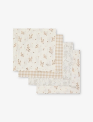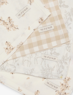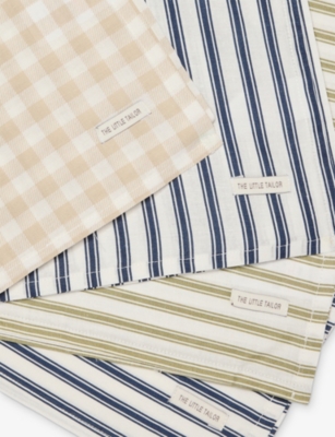 Striped Check-Print Four-Piece Cotton Muslin Cloth Set