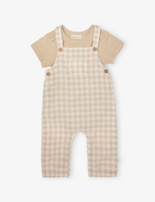 Gingham-Print Cotton T-Shirt and Dungaree Tee Set 3-24 Months