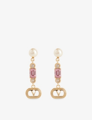 Pre-Loved Chanel Gold-Plated CC Crystal Faux Pearl Charming Winter Star Heart Drop Earrings- Price:$990.00