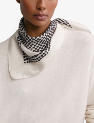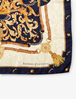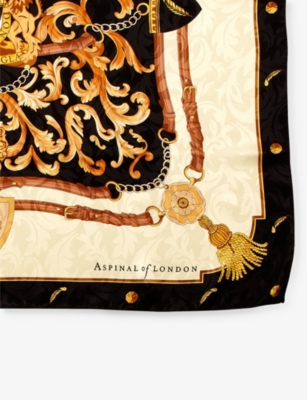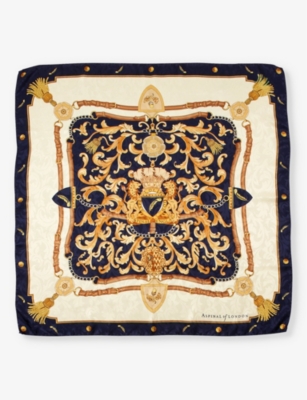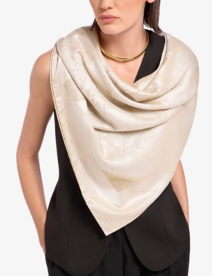 In our collection of ladies' silk scarves, you'll find pieces in maximalist patterns to add detail and colour to neutral outfits. Styles in floral prints are pretty and romantic, while abstract and geometric options make bold choices. Lean into a baroque aesthetic with lion motifs, monogramming and gold edging, or keep things subtly decadent with tonal stripes and graphics. Like a minimalist finish? Look out for monochromatic styles, or designs with modern colour-blocking. Bright hues - think magenta and scarlet - feel confident and unapologetic.