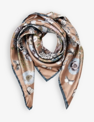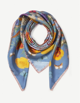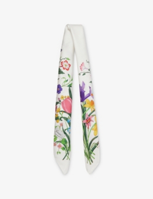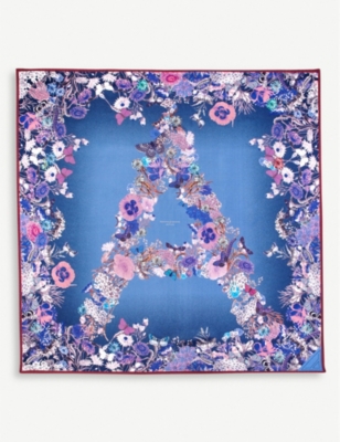 Botanical 'A' floral-print silk scarf- Discount price:$108.00