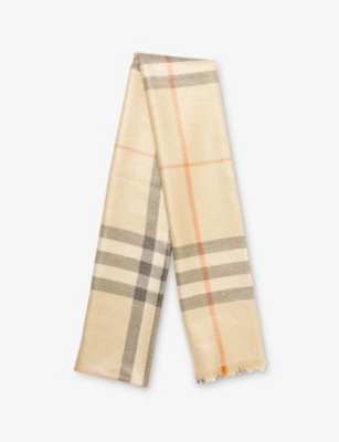 We also have women's designer silk scarves in super-soft wool blends; these are ideal for lightweight warmth in between seasons. Raw edges bring about a nonchalant air and brushed textures up the cosiness factor. Choose designs with eye-catching logos for an uncompromising finish, and team them with a chunky cashmere cardigan, skinny jeans and slip-on shoes to nail casual style.