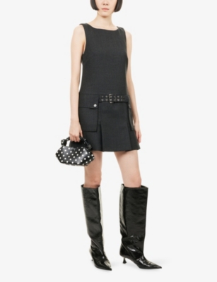 Rhinestone Square-Neck Stretch-Woven Mini Dress