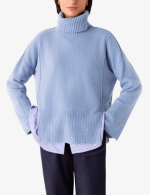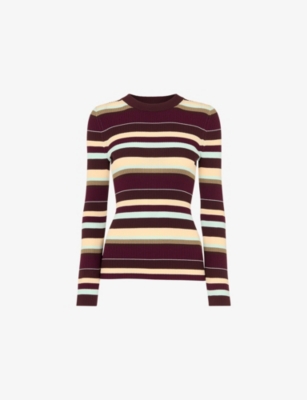 Stripe-pattern high-neck stretch-cotton jumper- Discount price:$42.00