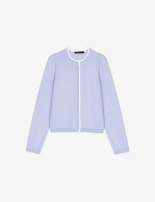 Rhinestone-Embellished Contrast-Trim Stretch Wool-Blend Cardigan- Discount price:$200.00