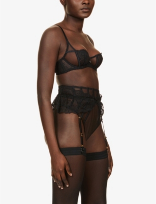 Lindie floral mesh suspender belt- Discount price:$167.00