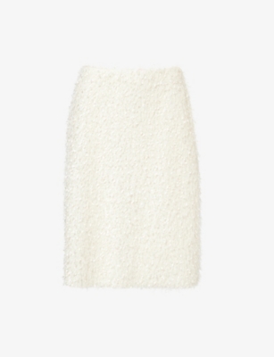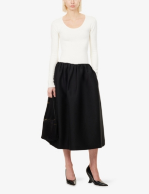 For weekends, look out for casual designs from our midi skirt selection. Laid-back materials such as classic denim and stretchy cotton feel relaxed and easy to wear, particularly when you team them with boxy T-shirts and snakers. Keep things simple with block colours, or experiment with patterns: florals are fresh and romantic, while polka-dots conjure a little bit of nostalgia. Plenty have unexpected details, including tiers for a bohemian finish and contemporary asymmetric hems. On chilly days, you can turn to knitted wool blends for coverage and cosiness. They're ideal for wear with suede heeled boots, slouchy turtlenecks and classic maxi coats.Â