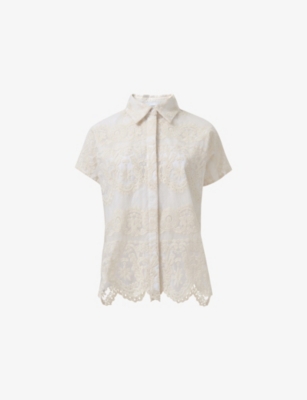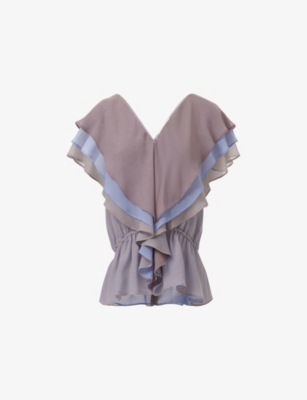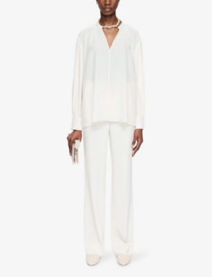 Monogram Plunge-V-Neck Cotton-Blend Blouse- Discount price:$370.00