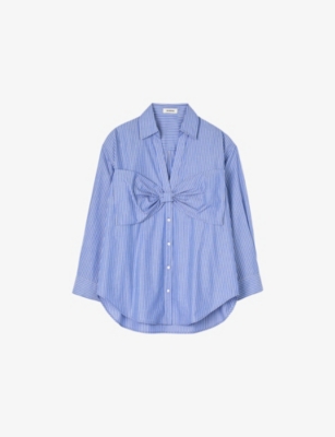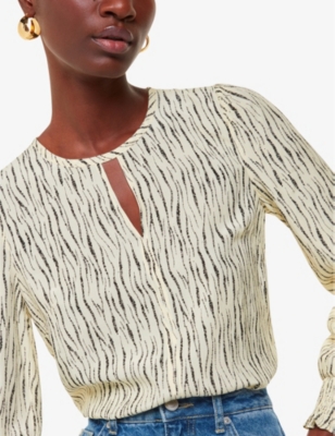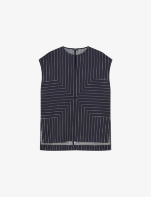 Shibori stripe-pattern woven blouse- Discount price:$46.50