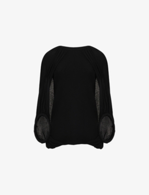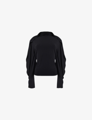 Essential slim-fit long-sleeve ribbed stretch-woven top- Discount price:$42.00