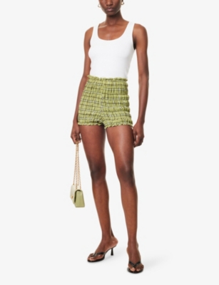 Fringed elasticated-waist high-rise cotton-blend shorts- Discount price:$44.00
