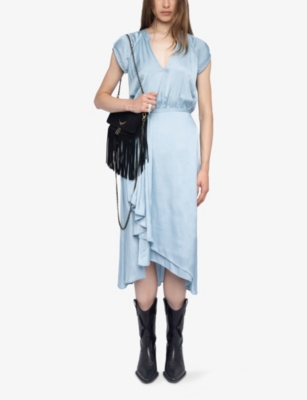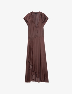Randall V-neck raglan-sleeve satin midi dress- Discount price:$340.00