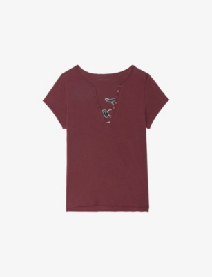 Zadig&Voltaire Paris has a rule-bending spirit thanks to its fusion of artistic and grunge influences. Express your rebellious side with pieces from our collection such as black distressed clothing and tough accessories. Each design echoes the non-conformist values of free thinker Voltaire, who the label is named after.