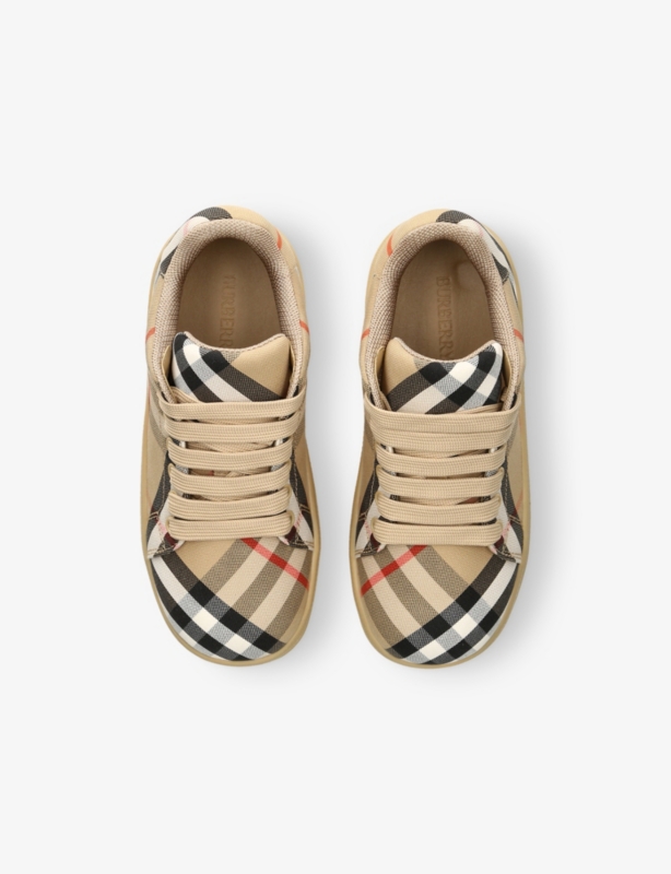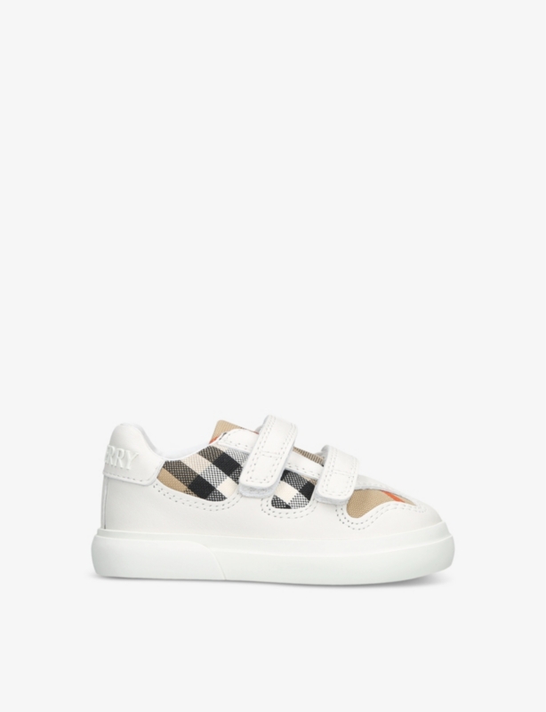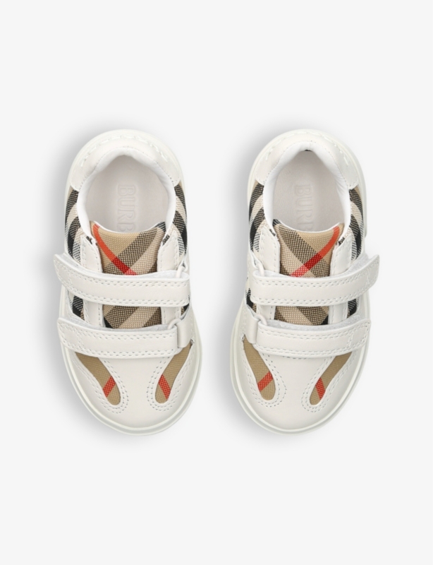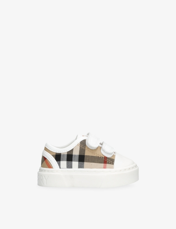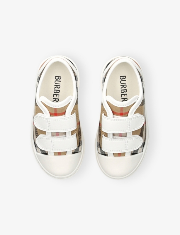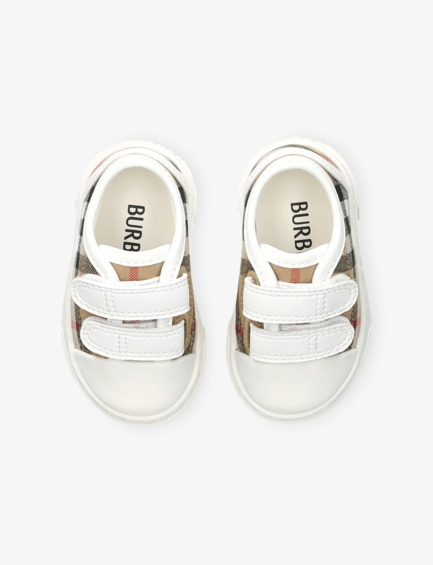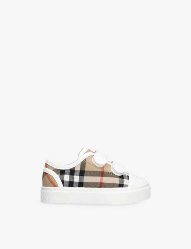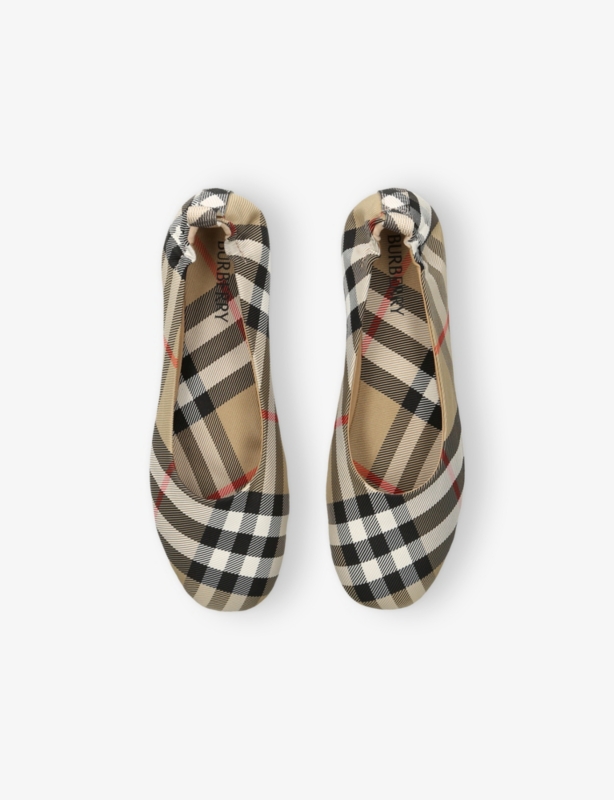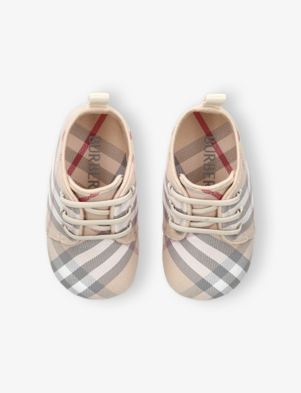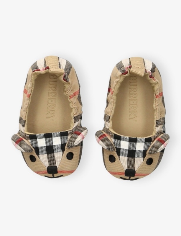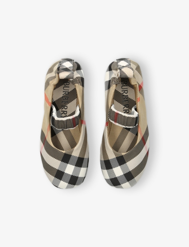 - Closed round toe, all-over check-print, pull tab at heel, Equestrian Knight Design at sole
