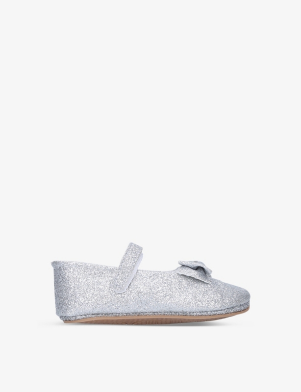 Lou Babe bow-embellished crepe-satin crib shoes 0-12 months