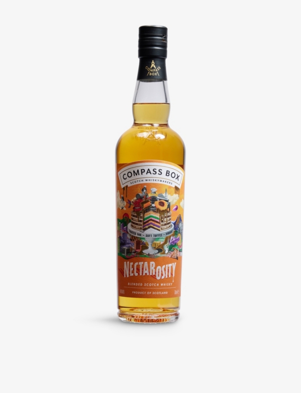 Compass Box's award–winning Hedonism 100 per cent grain Scotch whisky leaves a soft sweet spicy flavour in the mouth, while creamy vanilla and mixed peel tantalise the palate. Made from a combination of between 8 and 15 casks of grain whisky, most of which are over 20 years–old and all have been aged in first fill American casks. This ageing process creates a very special whisky, full and round with richly textured flavours of vanilla and toffee.