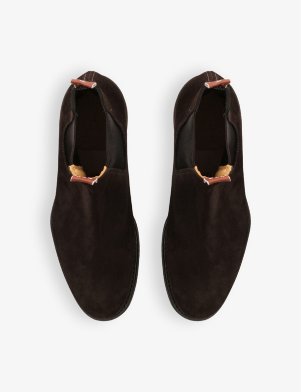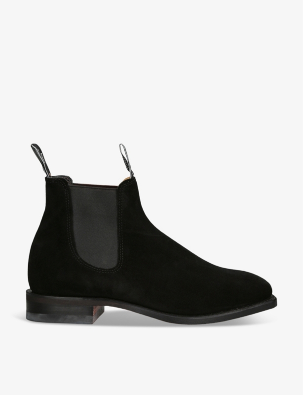 - Ankle rise, chisel square toe, pull tabs, elasticated side panels, flat heel, padded heel lining