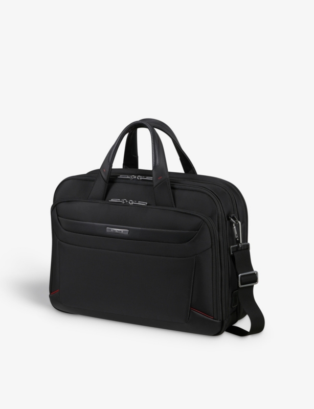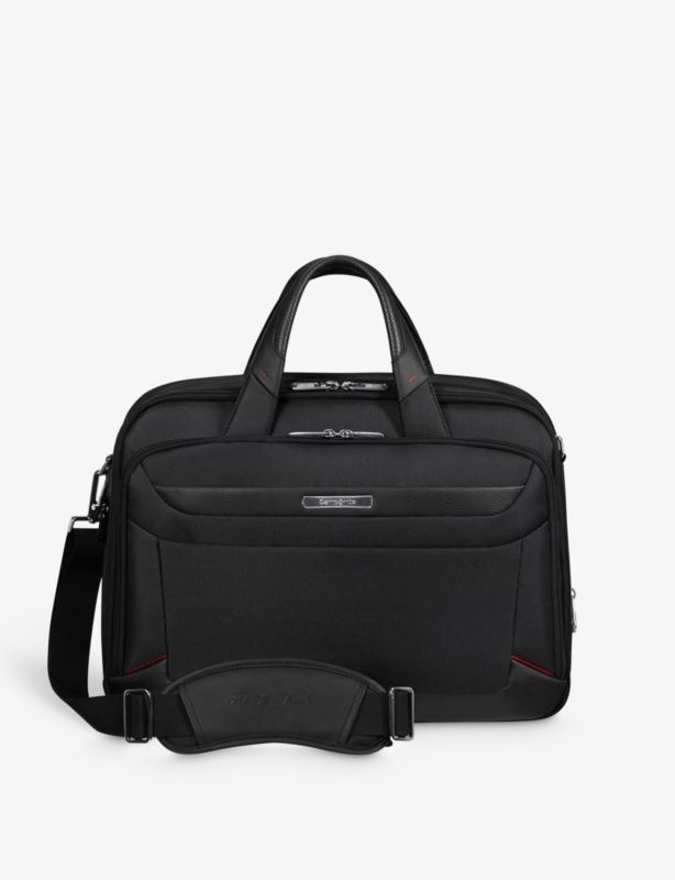 - Top handle, adjustable straps, two front zip pockets, two main compartments, twin zip pockets at sides, USB adapter, internal 15.6” laptop sleeve, gunmetal-toned hardware logo