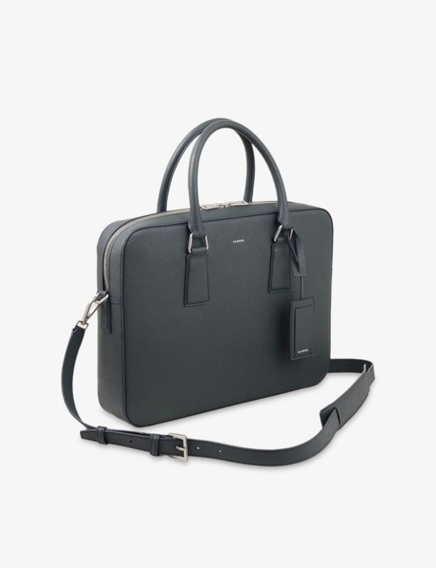 - Rectangle shape, top handle, grained texture, silver-toned hardware, main compartment
